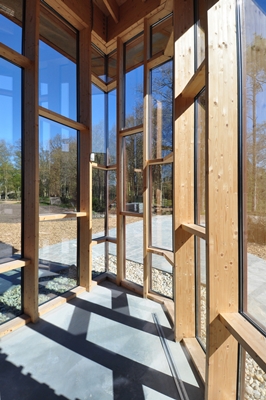 Het gebouw is opgezet als een termietenheuvel, waarbij grondpijpen en een zonnetoren voor natuurlijke ventilatie zorgen. De toren functioneert tevens als uitkijktoren en oriëntatiepunt. Er wordt eveneens gebruik gemaakt van natuurlijke energiebronnen, zoals zonne-energie en een pelletkachel die wordt gevoed door houtsnippers uit het nabijgelegen Asserbos.
