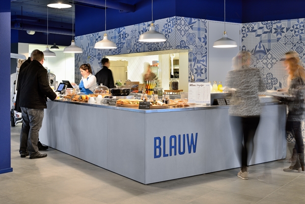 Rond dit met opvallende ‘Delfts’ blauwe tegels beklede volume bevinden zich informele plekken waar de bezoeker kan ontspannen, eten en drinken of overleg kan voeren. Ontspannen kan onder meer door tv te kijken of te lezen bij de open haard en een plek waar je kunt tafelvoetballen of een bordspel spelen.
