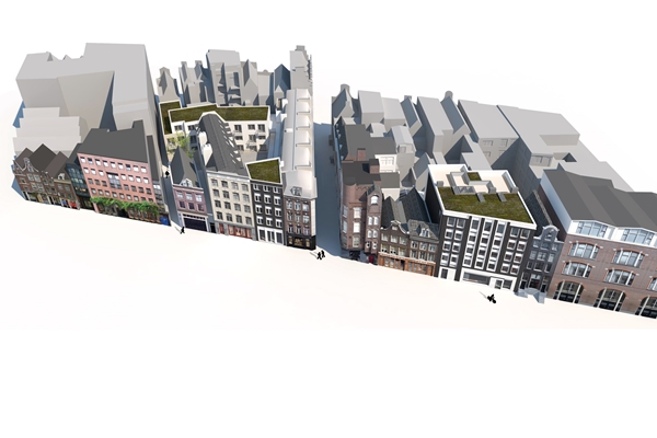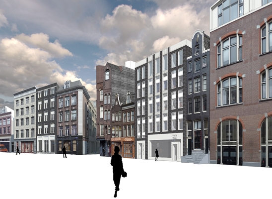 Het nieuwe plan sluit aan op deze historische structuur en introduceert tegelijkertijd nieuwe collectieve binnenplaatsen en verbindingen, zeggen de architecten van de nieuwbouw. Op de Spuistraat wordt een formeel ritme toegepast met hoge, regelmatige raampartijen in aandachtig gedetailleerde metselwerkgevels, geïnspireerd door de historische panden op deze locatie.