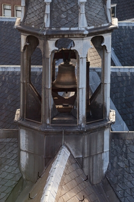 Na de klim naar boven betreden bezoekers een 'luchtige' woonkamer. Hier staan ze oog in oog met de engelvormige windvaan en rondom de zogenoemde dakruiter kunnen ze plaatsnemen in een zitkuil, dicht bij de klok.