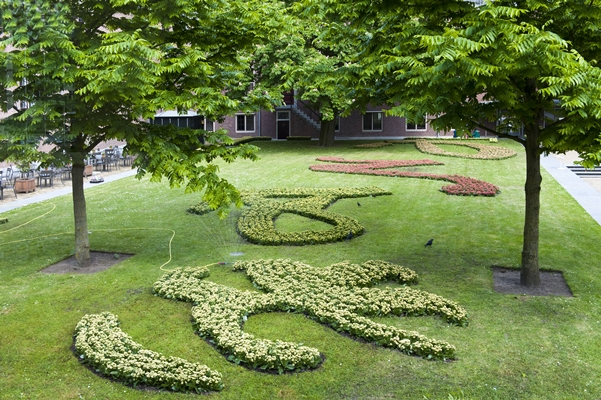 Afgelopen vrijdag is in de binnentuin van de Hermitage Amsterdam een stukje Keukenhof geopend. Het mozaïek van planten is geïnspireerd door de tentoonstelling