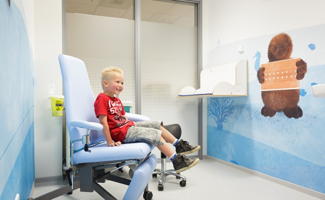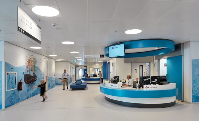 In totaal is ruim 4.000 vierkante meter speciaal grafisch behang toegepast. De figuurtjes worden zijn aan het thema zon, zee en strand. Actie en ontspanning zijn mogelijke dankzij bijvoorbeeld een groot speelschip in het centrale atrium, strandhuisjes op de spoedeisende hulp en de vuurtoren bij de entree.