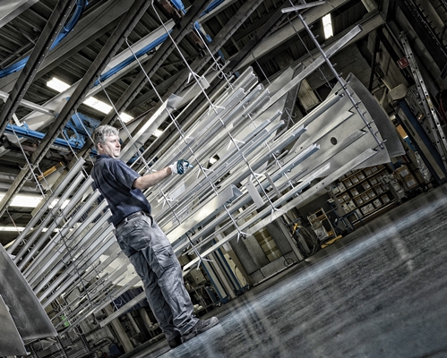 De productie- & assemblage-afdeling van de schuifdeuren is gesitueerd vlak naast de eigen poedercoatingfaciliteit van Boon Edam. Dit heeft als gevolg dat het schuifdeurentraject van onbehandeld aluminium tot gekleurd eindproduct kort is en snel doorlopen kan worden. Omdat het proces in huis gebeurt, kan Boon Edam de kwaliteit scherp in de gaten houden.