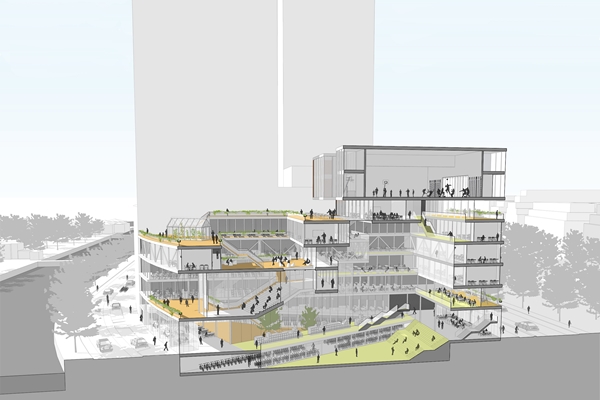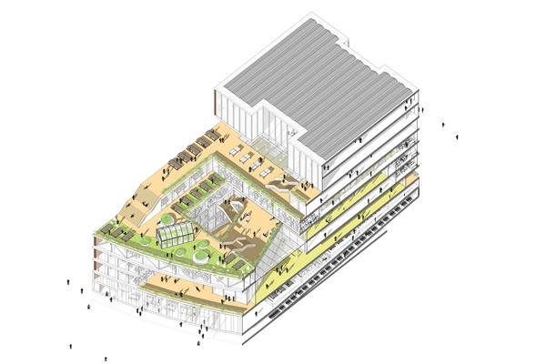 Ector Hoogstad heeft de winnende inzending in samenwerking met landschapsbureau Felixx en de kostendeskundigen van ICG gemaakt. De opdrachtgever, Stichting Voortgezet Onderwijs Amsterdam, wordt bijgestaan door ICS adviseurs.