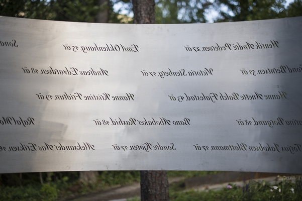 ontwierp een stalen ring met daarin de namen van de omgekomen personen gegraveerd. Het kunstwerk omcirkelt een open plek in het bos.