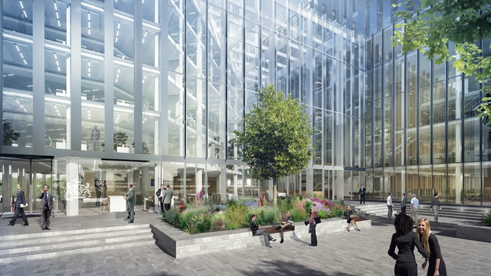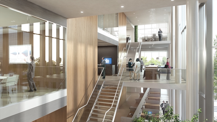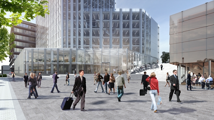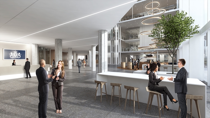 Het nieuwe rijkskantoor krijgt een transparante en dubbelhoge plint, met daarin algemene functies zoals de entreezone, het café, restaurant en aanlandwerkplekken. De bestaande bouw van twaalf lagen gaat alle kantoorfuncties bevatten, waarbij de geschiedenis van het gebouw goed leesbaar blijft, laat cepezed weten.