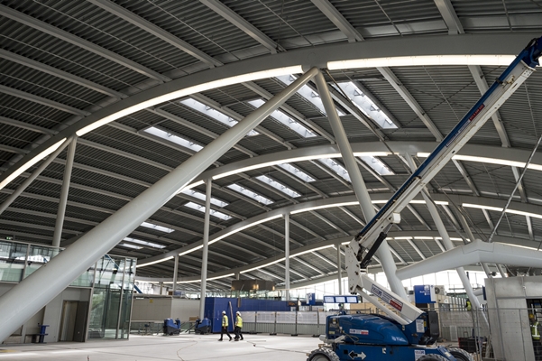 Met de opening van de noordkant van de hal is 5/6e deel van de nieuwe OV-terminal in gebruik, laat ProRail donderdag weten. De reiziger zal meer ruimte krijgen en meer ruimte ervaren door de opzet van de hal, het materiaalgebruik en de hoogte van het dak. Het golvende dak van het door