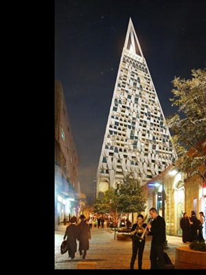 . Het 105 meter hoge bouwwerk komt naast de Mahane Yehuda-markt in het centrum van de stad te staan. The Pyramid wordt het op een na hoogste gebouw van Jeruzalem.
