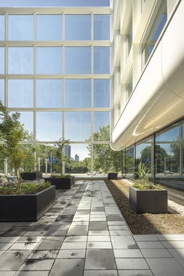 Aan de Europaboulevard staat het hotel nu nog vrij, maar in de toekomst zal er aan de zuidzijde ervan nog een ander gebouw verrijzen. Aan deze zijde heeft ZZDP Architecten er daarom voor gekozen de hotelkamers rond een verhoogde binnenplaats te vouwen. Aan de zuidzijde is zo een grote ‘wachtgevel’ ontstaan, zoals dat België genoemd wordt. In deze ‘wachtgevel’ zijn voor de tussentijd ruimtes opgenomen voor vleermuizen.