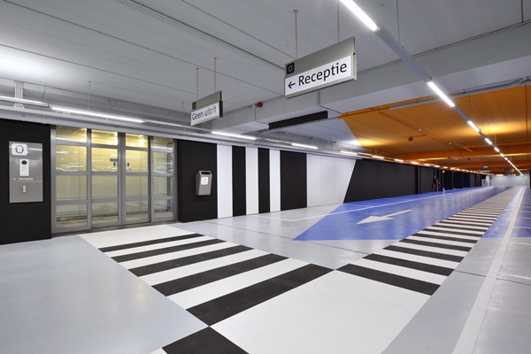 Naast de opvallende kleurvlakken heeft het Utrechtse architectenbureau een nieuw verlichtingsplan en duidelijke bewegwijzering toegepast. Voor de verlichting en de begeleiding van de verkeersroute heeft Versseput Architecten gebruik gemaakt van lichtlijnen met led.