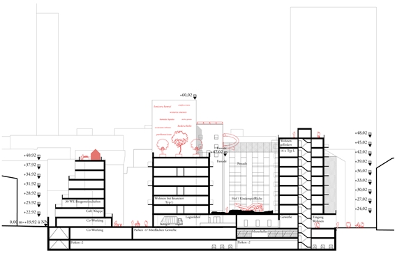 Het even heldere als ambitieuze programma van eisen heeft ook als leidraad gediend bij de ontwerpcompetitie. Het stedenbouwkundig plan van NL Architects en BeL Sozietät für Architektur gaat uit van een groot bouwblok, dat in verschillende stappen wordt uitgesplitst in kleinere delen. Dit draagt bij aan der programmatische, sociale en formele verscheidenheid.