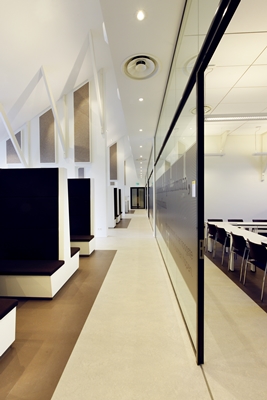 De centrale gang is iets opgeschoven en verbreed. Hierdoor hebben Maria Haag architectuur en Studio RTM aan een zijde van de gang werkgroepzalen voor dertig studenten kunnen realiseren, aan de andere zijde diepere collegezalen en een studielandschap. Langs de gangen is veel glas toegepast, waardoor daglicht diep in het gebouw valt en het gebouw overzichtelijk en ruimtelijk is.