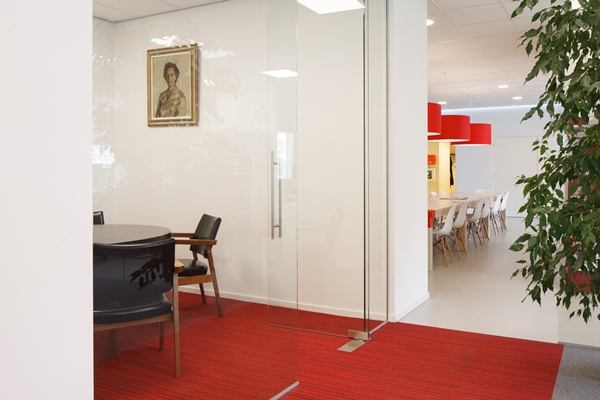 Een belangrijke wens van het Rode Kruis was om het open karakter van de organisatie en de samenwerking met vrijwilligers sterker te benadrukken. Met het oog daarop heeft VAA de muren rondom de entree opengebroken en er een grote ontvangstruimte van gemaakt.