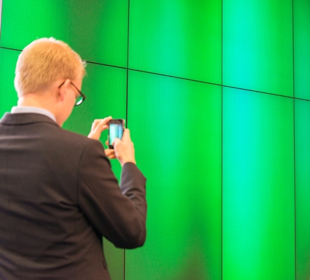 Een voorbeeld van de ‘embedded lighting’ die de onderzoeker liet zien waren verlichte akoestische elementen, waarvan de verlichting geanimeerd van kan worden. Technisch gezien is het een low-res akoestische mediawand. Maar een meters brede en meters hoge wand bestaande uit deze elementen toonde dat het in veel ruimtes een echte sfeermaker kan zijn.