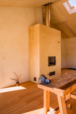 Voorts wordt de woning verwarmd met een finoven, zorgen zonnepanelen voor elektriciteit en wordt regenwater gefilterd tot drinkwater. Zo heeft Martens van Caimere Architecten een vakantiewoning gerealiseerd die zelfvoorzienend is in de energie-, water- en warmtebehoefte.