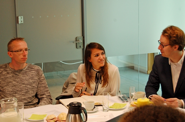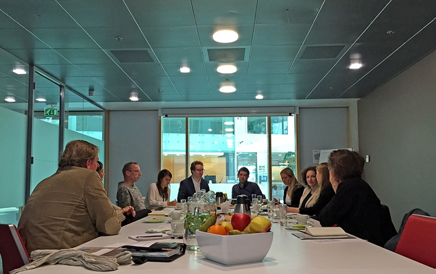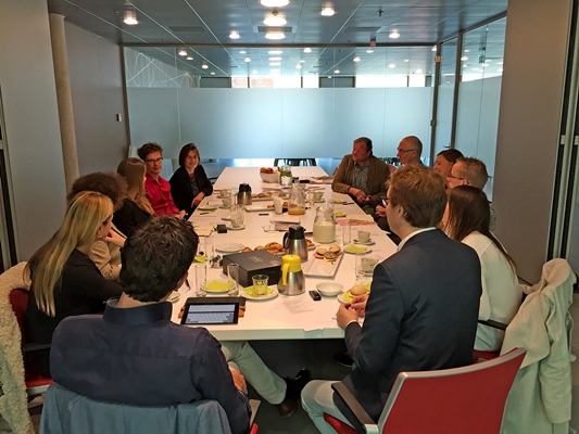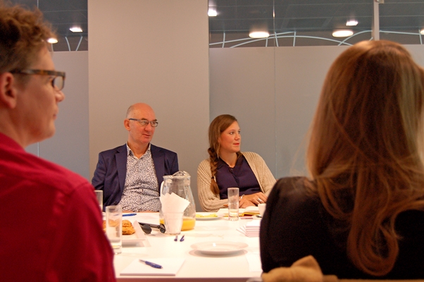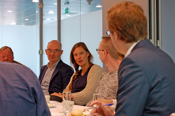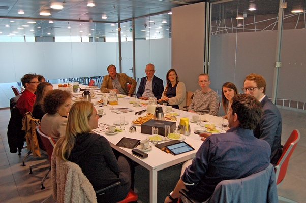 Deelnemers aan het ontbijt rond healing environment: AnneMarie Eijkelenboom (EGM architecten), Matthijs Sommeijer (Deerns), Dianta Wilmsen (MAS architectuur), Tineke Wijbenga (Wijbenga Architecten), John Dols (Twynstra Gudde), Peter Heijmen (HAN), Tamar Amiri (zelfstandig), Karen Glandrup (de Jong Gortemaker Algra), Alexandra Izeboud (Baars&Bloemhoff), Marco van Westerlaak (Tarkett), Ronnie Weessies (Architectenweb) en Michiel van Raaij (Architectenweb).