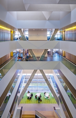 In een pakket van slechts 35 centimeter dikte zijn betonkernactivering, installaties, verlichting en akoestische voorzieningen in de vloerconstructie samengebracht. Door de flexibiliteit van deze verdiepingen kan een groot scala aan onderzoek plaatsvinden en ontstaan maximale kansen voor kruisverbanden tussen verschillende opleidingen.