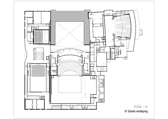 Het theatercafé heeft veel meer uitstraling aan het plein en staat in open verbinding met het restaurant en de foyer van de Grote Zaal. Rondom de foyer van de Grote Zaal zijn de lounge- en conferentieruimten en de kunstgalerij gegroepeerd. De multifunctionele foyer is nog meer geschikt gemaakt voor manifestaties en evenementen.