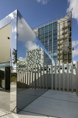 Het hoogste gebouw is de 42 meter hoge Court Tower, waarin zich drie rechtszalen en het mediacentrum bevinden. Het volume krijgt een begroeide gevel. De planten en bloemen symboliseren de verschillende landen die bij het Strafhof zijn aangesloten. Rond het complex worden tuinen aangelegd