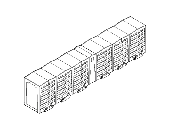 In het gebouwontwerp is aansluiting gezocht naar de baksteenarchitectuur van de Oostergasfabriek, waarvan een deel gesloopt is en een deel is gerestaureerd en herbestemd. Door de 72 appartementen op te delen in zes panden, heeft het blok een schaal die past bij de omgeving, meldt Heren 5. De galerijen zijn geknikt en een stevige plint ontsluit de bel-etage met trappen.
