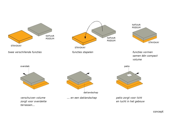Personal Architecture heeft een compact gebouw ontworpen. De compactheid is bereikt door onder andere een ver doorgevoerd meervoudig ruimtegebruik. Functies worden door de verschillende gebruikers gedeeld. Dit resulteert in lagere bouw- en exploitatiekosten en een sterke synergie tussen de functies en doelgroepen.