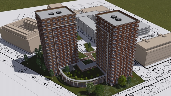 . Markantste onderdeel van het project worden twee woontorens van 53 meter hoog.