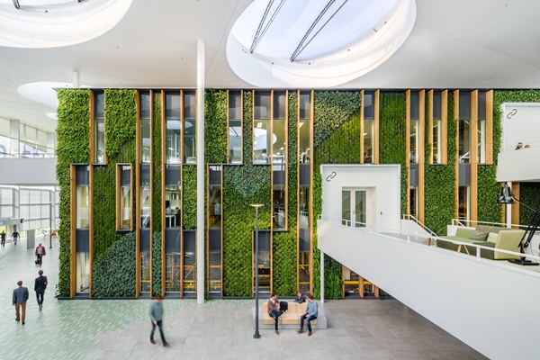 Voor de renovatie waren ongeveer 600 mensen werkzaam in het complex, nu is de capaciteit 1.500 medewerkers. Dankzij wifi binnen en buiten op het terrein kan overal gewerkt worden, maar het pand kent wel drie typen werkomgevingen. In een reeks workshops met medewerkers kwam naar voren dat er behoefte was aan een ‘klassieke’ kantoorvloer, een ‘atelier’ waar mensen samenkomen voor overleg en brainstormsessies, en een ‘bibliotheek’ waar het draait om rust en concentratie.