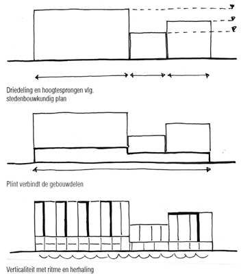 LEVS heeft het gebouw aan alle zijden zorgvuldig vormgegeven. Zo heeft het architectenbureau op diverse plekken verbijzonderingen gemaakt in de vorm van verspringend en getrapt metselwerk, dieper gelegen vlakken en staand metselwerk. Aan de IJdoornlaan omkaderen metselwerkschijven de balkons. Dit geeft ritmiek en plasticiteit aan de gevel en ondersteunt de driedeling, aldus LEVS.