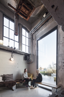 heeft het gesloten industriële gebouw transparanter gemaakt, waarbij de zonering en sfeer van het gebouw als leidraad zijn genomen.