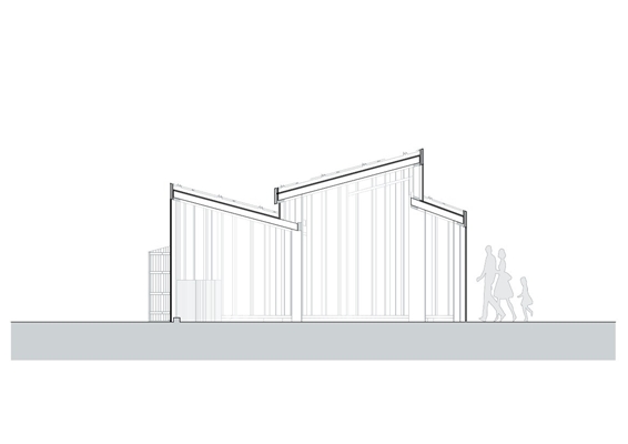 Geïnspireerd door de geleding van het lichaam van een insect heeft Marcus het bijenpaviljoen als een reeks ovale ruimtes op de middenlijn ontworpen. De zuidelijke gevel is de contactplaats voor parkbezoekers en zorgt voor zonlicht (energie) op de bijenkasten.
