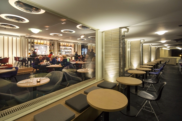 Een nieuwe, rechthoekige bar staat haaks op de lengterichting en de akoestiek is verbeterd. Het restaurant kon zijn oude oppervlak terugkrijgen door de verhuizing van een aantal kantoorruimtes.