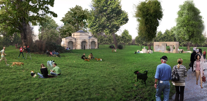 Het ontwerp van Barkow Leibinger verwijst naar een tweede paviljoen, dat op een artificiële heuvel in de buurt moet hebben gestaan. Dit paviljoen en Queen Caroline’s Temple worden overigens beide toegeschreven aan William Kent. Zijn idee was dat het tweede paviljoen vanaf verschillende plekken in het park te zien was en dat het tevens rondom zicht op de omgeving bood.