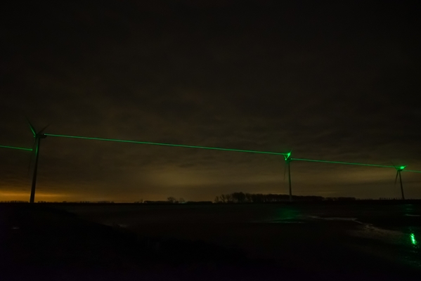 omschrijft het kunstwerk in Sint-Annaland als ‘een dans van lichtlijnen’. Speciale software en trackingtechnologie detecteren de windmolenwieken die met 280 kilometer per uur draaien. Groene lijnen van licht worden gekoppeld aan deze wieken. Hierdoor ontstaat een spel van licht dat altijd anders is en meditatief wordt, aldus het bureau.