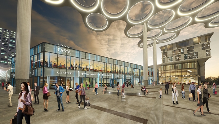 heeft het definitief ontwerp gepresenteerd voor Het Paviljoen in Utrecht. Het gebouw verrijst naast de nieuwe stationshal, boven de treinsporen 1, 2 en 3. Er zullen winkels en horeca in worden gehuisvest.
