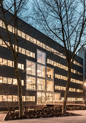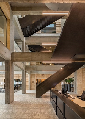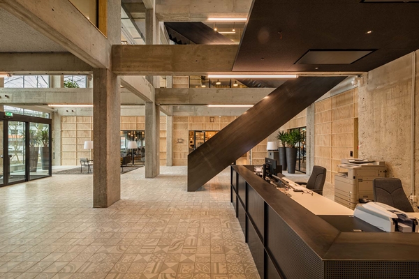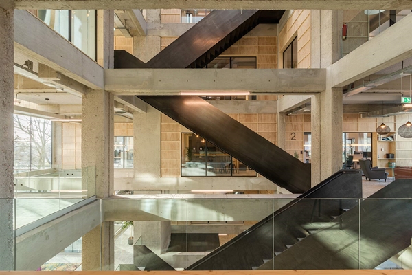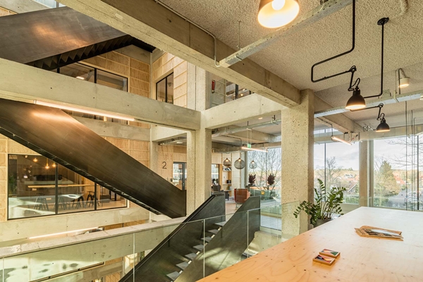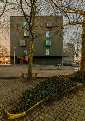 is een bestaand kantoorgebouw getransformeerd voor diens nieuwe gebruiker. Meest in het oog springende ingreep is de nieuwe vide, vanaf buiten zichtbaar dankzij de ramen in een Tetris-patroon.
