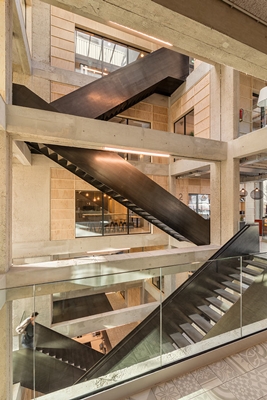 Het weghalen van de vloeren en muren heeft samen met de nieuwe glasvlakken er ook voor gezorgd dat er meer daglicht het 22 meter diepe (en voorheen donkere) gebouw binnendringt.