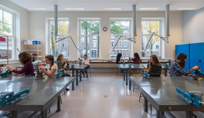 , heeft Arconiko in oude glorie hersteld. De ruime en hoge lokalen beiden het Rudolf Steiner College (met vmbo, havo en vwo) prettige lesruimten.