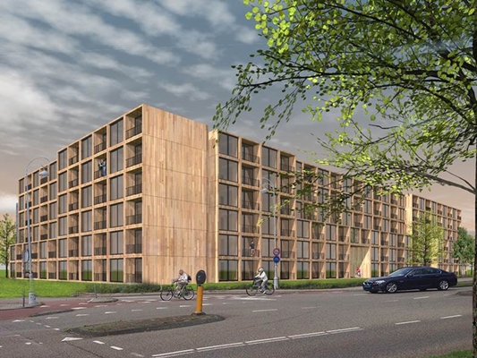 Houthybride woongebouw langs de A8 in Zaandam opgeleverd