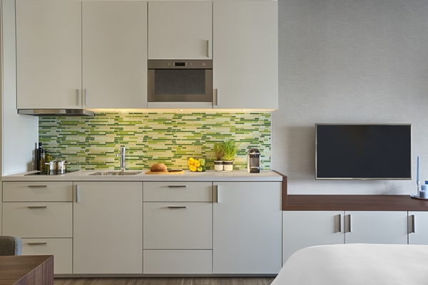 Het hotel telt 160 kamers, variërend tussen een standaard studio of een tweekamerappartement. Elke kamer beschikt over een volledig uitgeruste keuken, zithoek, werkplek, bed en een spa-geïnspireerde badkamer. Het hotel beschikt ook over een kiosk met een kleine selectie aan eten en drinken. Hier kan de gast een en ander kopen om op zijn kamer te bereiden.
