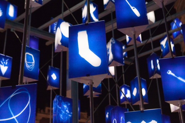 en bestaat uit 258 lantaarns. Op iedere lantaarn staat een afbeelding van de koopwaar van een van de marktkramen.