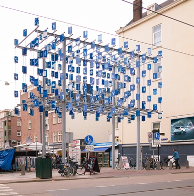 De Albert Cuypmarkt in Amsterdam beschikt sinds kort over een eigen entreepoort. De tien meter hoge poort is ontworpen door