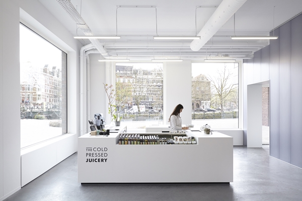 Als onderdeel van het project ontwierp XML ook de store-in-store van The Cold Pressed Juicery. De volledig uitgeruste ‘juicebar’ biedt bezoekers van de studio koudgeperste sappen, smoothies en voedzaam sporteten.