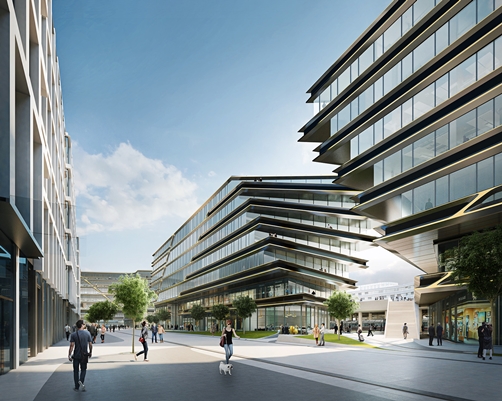 Rond het station verrijzen tot 2022 enkele gebouwen die verschillen qua omvang en ontwerp, maar wel een coherent geheel vormen. De kantoorgebouwen bieden vooral plek aan bedrijven in de diensten- en IT-sector. De bebouwing wordt relatief laag gehouden, met een aantal hoogteaccenten aan de kant van het historische centrum (ook wel bekend als ‘de stad van honderd torens’).