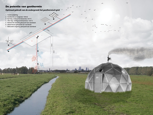 Volgens het architectenbureau lijkt op basis van de huidige kennis van de ondergrond en de boringen met geothermie in een groot deel van Nederlands warmtebehoefte te kunnen worden voorzien. In vergelijking met voorzieningen als zonneboilers en warmtepompen zou de methode, waarbij warm water van twee tot vier kilometer diepte wordt opgepompt, een enorm schaalvoordeel bieden.