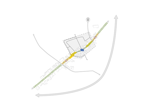 De interventies worden gebundeld in verschillende projecten: een karakteristieke dorpsstraat, een voorzieningengordel, een nieuw buurtcentrum. De parkeervelden worden geleidelijk getransformeerd tot multifunctionele parkeerpleinen.