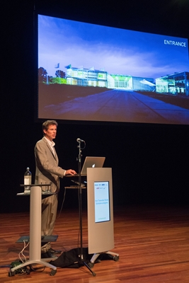 Waar Maurice de Hond zich hardop afvroeg of een goed architectonisch ontwerp zijn onderwijsconcept wel kon ondersteunen, daar beantwoorde architect Gianni Cito van Moke Architecten die vraag in zijn lezing hierna overtuigend met een ‘ja’. Een specifieke architectuur kan een specifieke onderwijsvisie echt versterken.