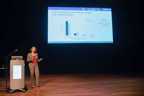 Waar Vos in zijn ontwerpen veel verder wil gaan dan het minimale binnenklimaat, daar bleek uit de lezing van adviseur Froukje van Dijken van BBA Binnenmilieu dat veel scholen de gewenste basis nog lang niet halen. In Rotterdam heeft BBA Binnenmilieu het binnenklimaat van 103 scholen onderzocht. Hieruit bleek dat 71% van de scholen onvoldoende geventileerd wordt. Daarbij scoorden scholen met mechanische ventilatie over het algemeen beter dan scholen die dat niet hadden, maar bleek dat geen garantie voor succes. Zo kwam het adviesbureau regelmatig installaties tegen die niet goed aangesloten waren, niet goed gebruikt werden, niet goed onderhouden waren, of vanwege het geluid dat ze produceerden helemaal uitgezet waren.