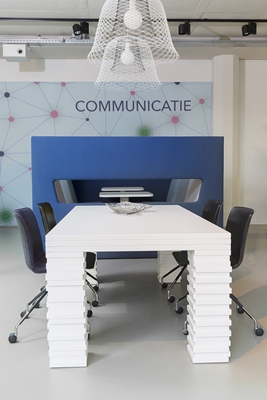 De modulaire meubelserie HUBB, eveneens ontworpen door Mecanoo voor Gispen. heeft een prominente plaats gekregen in het nieuwe inspiratiecentrum.