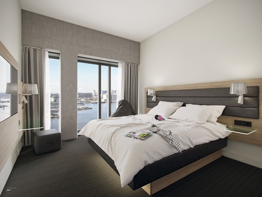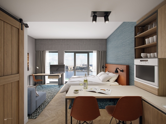 In het gebouw, dat uitzicht biedt over het IJ, komen een MOXY Hotel met 120 kamers en een Extended Stay Hotel met zestig kamers. Beide hotels vallen onder het merk Residence Inn by Marriott. De hotels, met ieder een eigen karakter, bedienen zowel de toeristische als zakelijke markt.