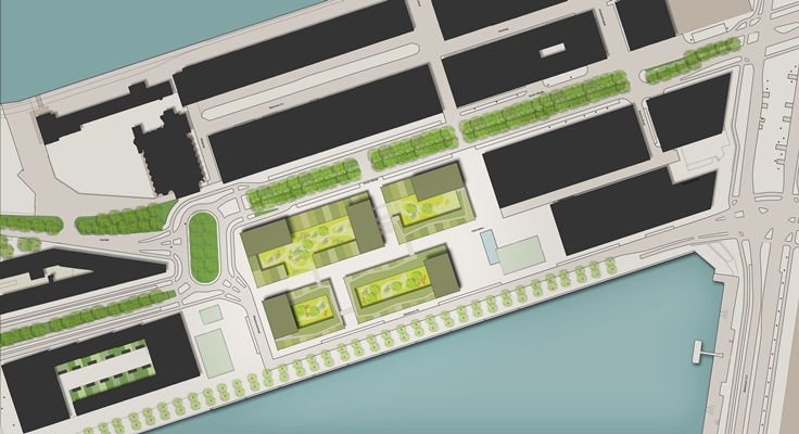 worden vier woonblokken gebouwd, die via hoven en daktuinen met elkaar zijn verbonden tot een doorgaande route. Het project met 450 woningen is bestemd voor uiteenlopende doelgroepen.